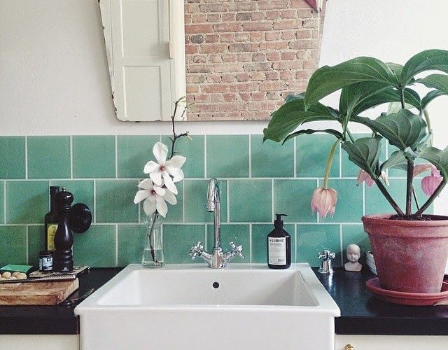 Plus original que le classique duo bleu/blanc, le vert d'eau apporte une note plus moderne à une salle de bains un brin vintage.